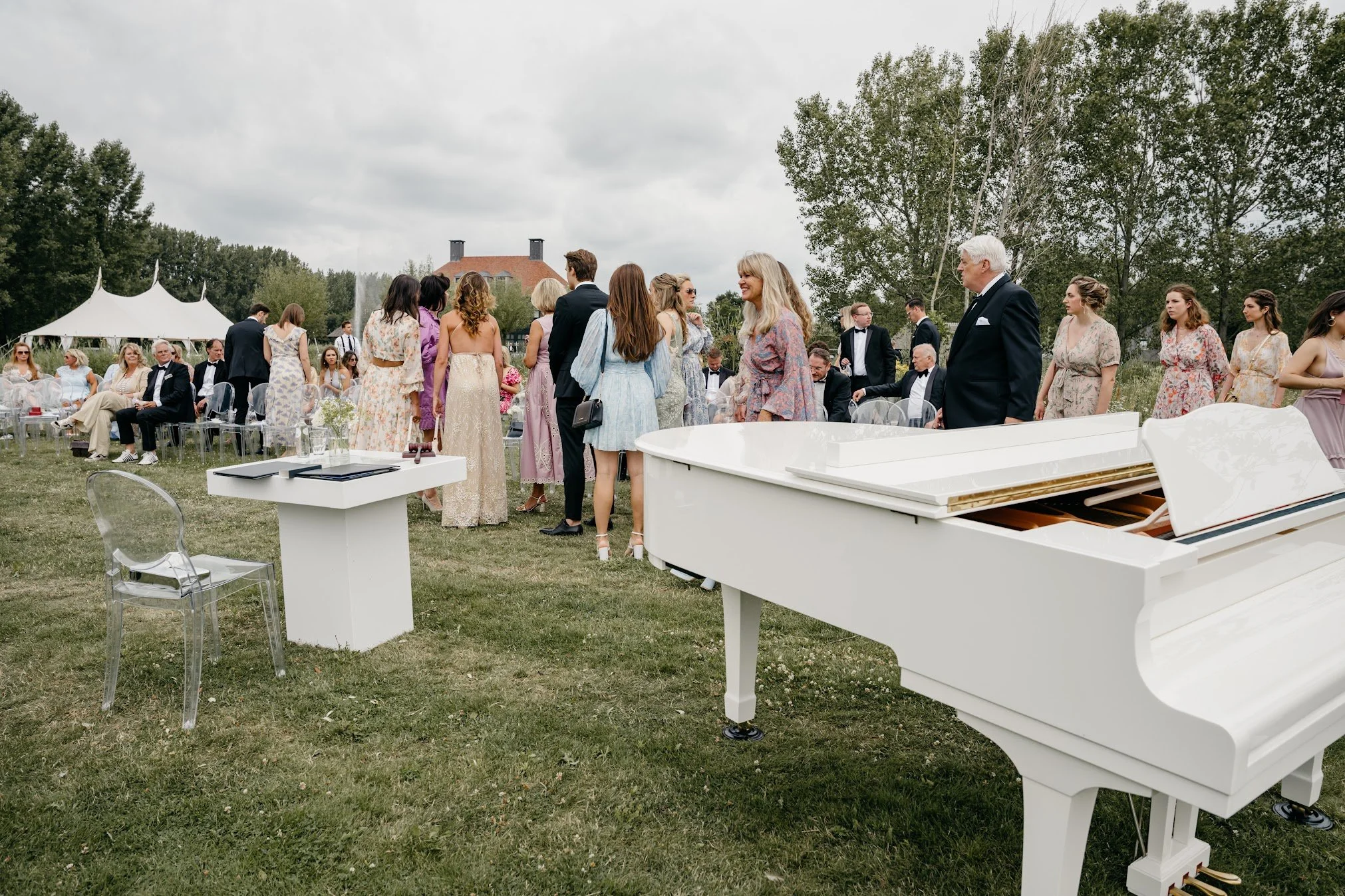 Zoals we binnen BYLEI gewend zijn ontzorgen we het bruidspaar, maar ook de ceremoniemeester van alle zorgen tijdens een van de belangrijkste dagen in hun leven. Binnen deze bruiloft hebben we gebruik gemaakt van de unieke mogelijkheden die de prachtige tuin rijk is. Met een piano vleugel achterin de tuin tijdens de ceremonie, een Eiffel toren bij het aperitief, een sit-down diner voor 80 gasten bij het huis tot een feest avond met Joel Borelli in een chique tent verder op in de tuin. BYLEI verzorgt alles van A tot Z.